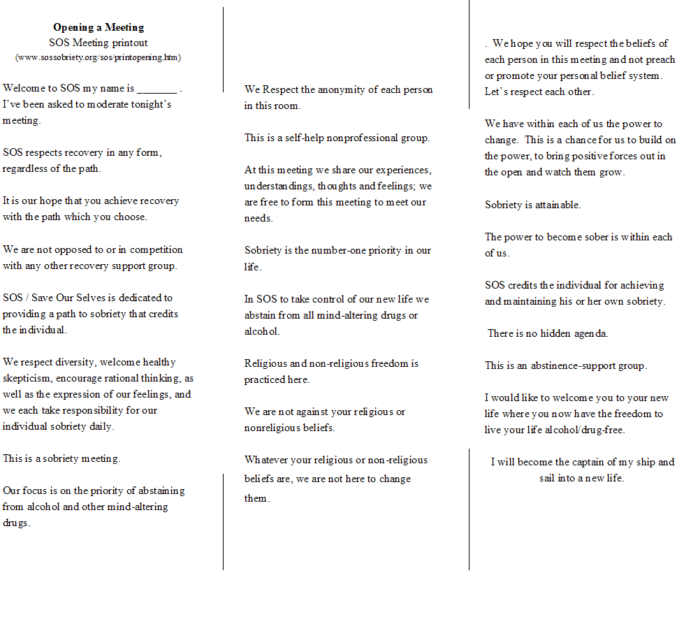 ![]() Questions and answers about SOS Philosophy Information about starting support meetings  |